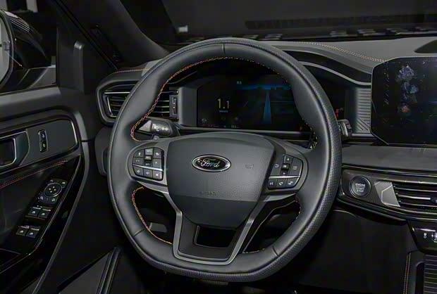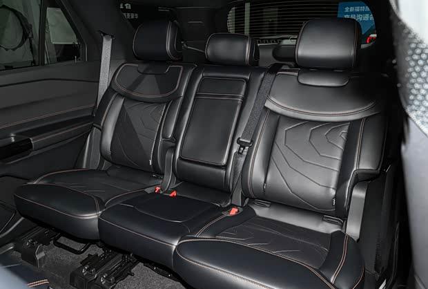 内饰延续12.3英寸全液晶仪表与27英寸4K中控屏组合,搭载SYNC+3.0智行互联系统。中控区域配备双无线充电面板、电子旋钮换挡机构及纵置双杯架。配置方面标配方向盘加热、前排座椅通风加热、二排座椅加热、夹层降噪前挡风玻璃、后排隐私玻璃及电动记忆尾门等。5座布局后排可完全放平,形成6平方米平整空间,后备厢基础容积1505升,同时新增100升隐藏储物盒与15个分区储物格。