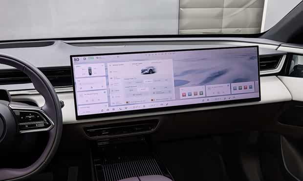 内饰方面,欧洲版CX-6e与国内EZ-60保持一致,最引人注目的是搭载了一块26.45英寸5K悬浮一体式屏幕,并配备50英寸高清AR-HUD抬头显示。车辆采用双辐平底方向盘和怀挡换挡机构,副仪表台区域设有手机无线充电面板。