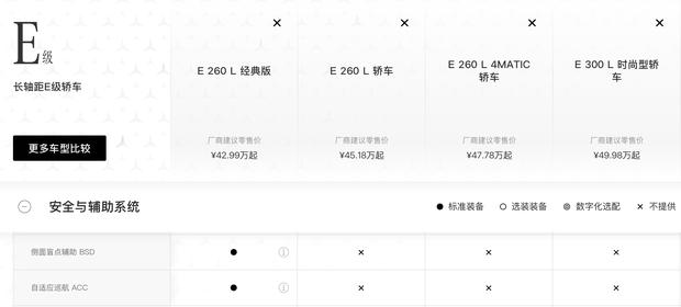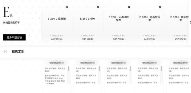 在具体车型配置方面,E 260 L经典版作为全新入门级车型,相较次低配的E 260 L版本减少了内置行车记录仪与USB组件增强版功能。不过该车型仍标配侧面盲点辅助系统与自适应巡航功能。若需选装智能领航辅助Max系统,需额外支付17400元,该套件包含变道辅助、交通拥堵自动起步、车道保持辅助等多项智能驾驶功能。
