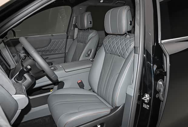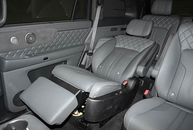 进入车内,中控台与副驾驶席配备贯穿式双联屏,内饰设计延续简洁风格。后排为2+2+2的六座配置,同时搭载车载冰箱及第二排可翻转娱乐屏。