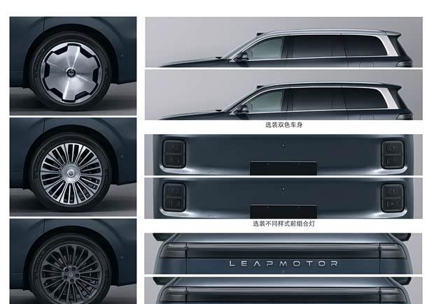 从申报图来看,零跑D19延续了家族化设计语言,前脸采用星环式贯穿灯带与分体式大灯组合,具有较高的辨识度。车辆还配备了DLP投影大灯与ADB智能自适应远光功能,进一步优化照明体验。值得注意的是,纯电版车型因设有前备厢,发动机舱盖造型与增程版略有差异。新车将提供松谷绿、液态银、金属黑、天幕灰及光电白等多种车身颜色。