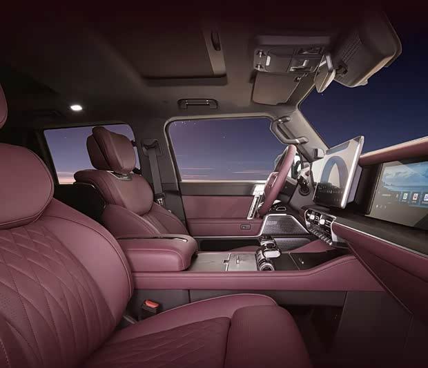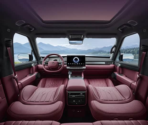 猛士M817的内饰采用大面积软质材料包覆,比例达到91.2%。新的红黑配色方案营造出鲜明对比,其配备的Nappa真皮座椅集成了加热、通风与按摩功能。猛士917则采用了星焰红与静谧黑的双色拼接设计。