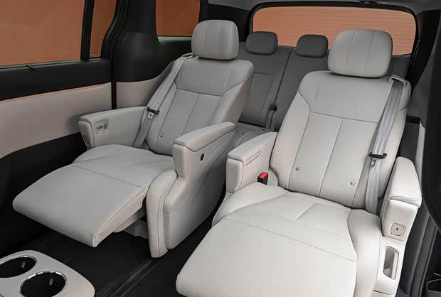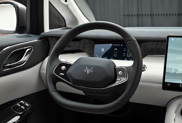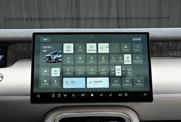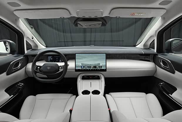 进入车内,双色内饰搭配256色氛围灯营造出座舱氛围。中控区域配备大尺寸悬浮屏幕,方向盘采用两辐式设计,前方设有独立仪表显示屏,下方还布置了无线充电面板。车辆采用2+2+3七座布局,搭载包含前排头枕音响在内的22扬声器音响系统。第二排配备两张独立零重力座椅,支持16点按摩、通风加热及腿托调节,可实现近乎平躺的坐姿。此外,二排还提供了吸顶屏、小桌板及车载冰箱。