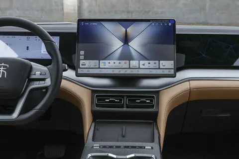 在外观方面,2026款宋L DM-i基本延续了2025款的整体造型,前脸采用大尺寸镀铬点阵格栅,搭配无漆轮眉与贯穿式尾灯。不过,新车将车门拉手改为半隐藏式结构。内饰部分,怀挡式换挡设计释放了副仪表台区域空间,手机无线充电板与横向双杯架得以保留,实体按键布局则调整为单排式。高配车型预计将增加车载冷暖箱与云辇-C智能阻尼车身控制系统。