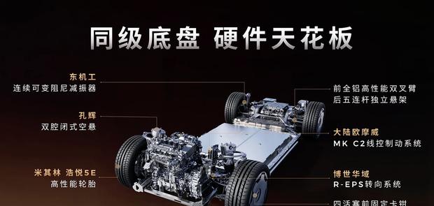 底盘采用前双叉臂、后五连杆独立悬架,全系标配CDC减振器。除入门版外,其余车型均配备双腔空气悬架,支持高度调节,并拥有主动魔毯预瞄等功能。三电机性能版更可实现圆规掉头。