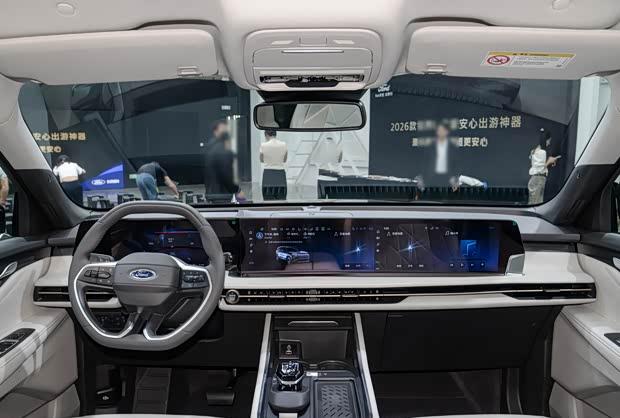 内饰方面,2026款锐界L搭载12.3英寸全液晶仪表与27英寸中控屏组合,并配备SYNC+2.0智行互联系统,支持AI语音交互、在线导航等功能,同时提供HUD抬头显示。车内采用三辐式方向盘与银色饰条点缀,副仪表台区域布局有电子挡把、实体按键及手机无线充电板。座椅布局提供2+3+2和2+2+3两种七座形式。配置上,混动版与燃油版的豪华型新增第二排座椅加热功能,部分高配车型还增加了方向盘加热,提升冬季用车舒适性。