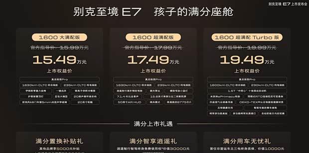 近日,别克品牌旗下全新插电混动SUV——至境E7正式发布,共推出3款配置车型,官方指导价格区间为15.99万元至19.99万元。在上市期间,用户可享限时权益价,实际支付价格为15.49万元至19.49万元。该车型计划于近期开幕的北京国际车展公开亮相。