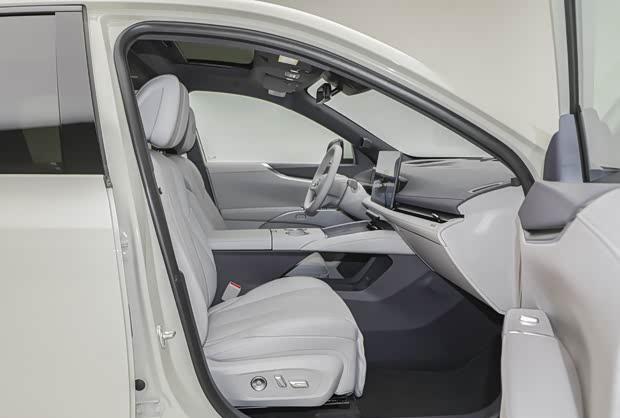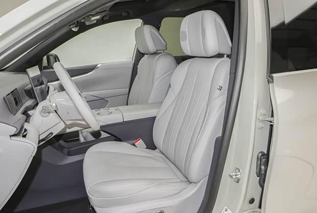 进入车内,至境E7采用大五座布局,配备四座悬浮层座椅。前排搭载8.8英寸仪表屏与15.6英寸中控屏,并配备50英寸AR-HUD抬头显示,支持CarPlay、HiCar、CarLink等手机互联功能。副驾驶座位特别配置伊姆斯零重力躺椅,可通过电动调节实现多角度躺姿。后排靠背支持115度至125度电动调节,全车四座均具备三档加热与通风功能,前排另配备多点按摩。内饰提供松烟紫黑与云上雅米两种主题配色。