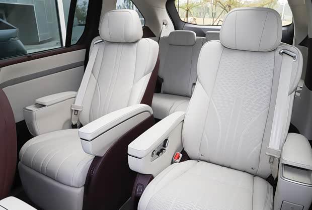 内饰方面,新车配备10.25英寸全液晶仪表与双色双辐式多功能方向盘,中控台搭载17.3英寸悬浮式触控屏,空调出风口区域设计精致。配置上包括无线充电面板、双杯架、RNC主动降噪、前排电吸门、第二排21.4英寸娱乐屏及零重力座椅,并全球首发三排电动折叠功能。内饰提供云间玫棕、月影咖和气宇灰三种配色。全系搭载AI天玑6.0智能座舱,支持智能迎宾、充电推荐等功能,并配备OMS座舱看护系统。
