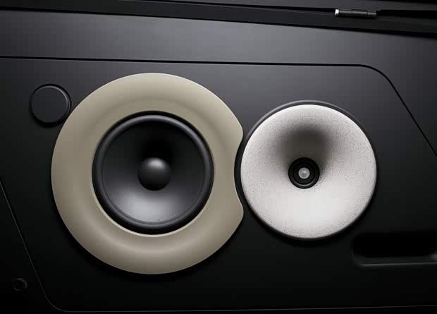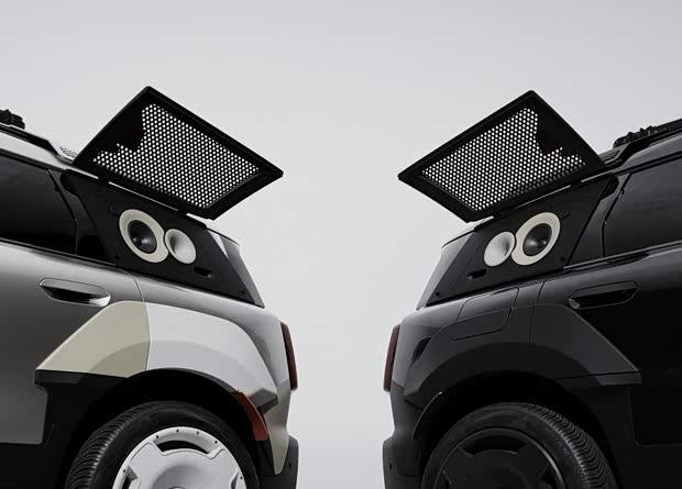 车内设计同样别出心裁。车辆移除了后侧车窗,并将一套专业级户外音响系统直接集成于车身结构之中。音箱箱体采用了特殊的“铸造聚合物花岗岩”材质,其中高音与中音单元直接与车身结合,低音和超低音单元则巧妙布置于车尾。在另一侧车窗位置,设计师嵌入了一台复古风格的随身听,与高科技音响系统形成鲜明而有趣的反差。
