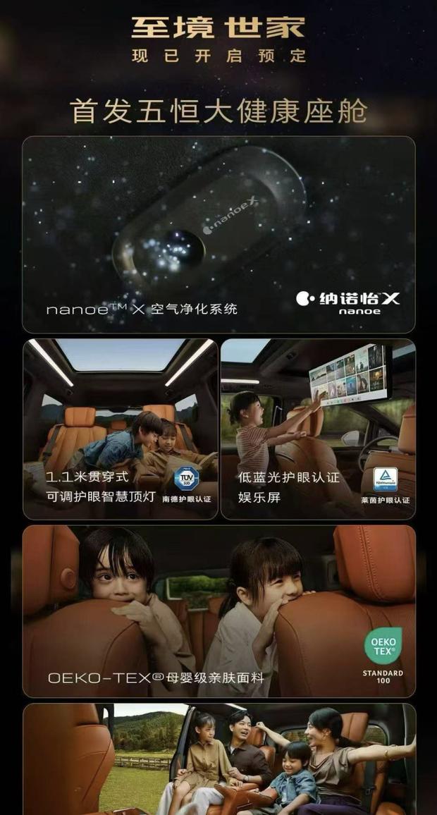 内饰配置方面,新车配备10.25英寸仪表屏、16.3英寸中控屏、16.3英寸副驾屏及21英寸4K后排娱乐屏,所有屏幕均达到200PPI视网膜级显示标准,并获得莱茵TUV低蓝光认证。除仪表屏外,其余三块屏幕均支持触控操作与多屏联动功能,可实现前后排内容共享或独立播放。后排娱乐系统支持蓝牙麦克风及游戏设备连接,配合Bose音响系统提升娱乐体验。此外,车辆还配备50英寸AR-HUD抬头显示及二排5.5英寸智能控制屏,可调节座椅、空调、冰箱等设备。
