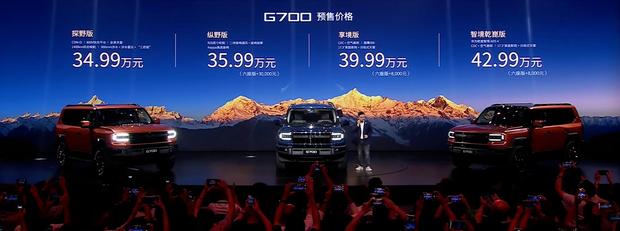 捷途纵横G700定于10月19日上市,预售价34.99-42.99万元。新车采用硬派设计风格,车身尺寸为5198/2050/1956mm,轴距2870mm。内饰配备15.6英寸悬浮中控屏与35.4英寸贯穿式显示屏,提供五座/六座布局。动力搭载2.0T混动系统,系统总功率560kW,综合续航1400km。车辆采用非承载式车身结构,配备三把差速锁及智能驾驶系统。