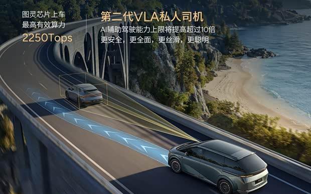 在智能化配置上,新车标配算力达2250TOPS的图灵芯片,并搭载第二代VLA私人司机系统。安全方面,全车配备包含安全带安全气囊在内的九个安全气囊,同时高阶主动安全功能进一步升级,AES与AEB系统的最高工作车速均提升至130公里/小时。