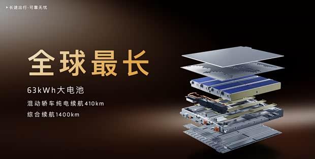 动力系统由1.5T发动机与前后双电机组成,发动机最大功率110千瓦,前后电机最大功率分别为150千瓦与230千瓦。车辆搭载63千瓦时三元锂电池组,CLTC工况纯电续航里程为410公里,电量从20%充至80%仅需12分钟,综合续航里程可达1400公里。底盘采用前双叉臂后五连杆全铝结构,配备后轮独立转向系统、可调高度达65毫米的空气悬架与CDC减振器,并支持智能魔毯功能。
