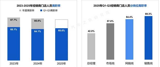 行业数据显示,2025年前三季度汽车经销商营销人员离职率约66%,一线销售离职率接近70%。生存压力之下,客户体验也受到影响。一位宝马车主反映:“以往保养提供自助餐,现在连瓶装水都没有了。想多拿盒酸奶,后勤人员便面露难色。”