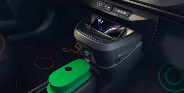 内饰配备7英寸液晶仪表与10.25英寸中控屏,界面采用鲜明的黄绿配色方案。空调出风口与控制拨杆等细节设计精致,座椅采用织物材质并支持后排50:50放倒。前排座椅后方特别设置了磁吸支架,便于固定手机等随身物品。