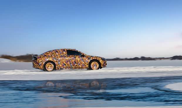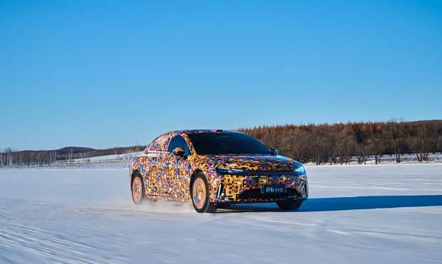 车身侧面呈现出经典的三厢轿车轮廓,车顶线条采用快背式设计,顶部前端配备激光雷达。前后翼子板略带宽体视觉效果,但整体线条简洁,面板设计趋于简约。轮圈方面提供17英寸与18英寸两种规格可选。尺寸上,新车长宽高分别为4906/1922/1508毫米,轴距达到2926毫米。