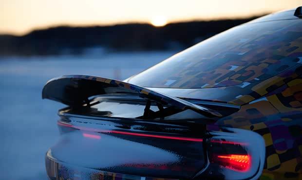 车尾部分延续了与车头一致的设计语言,大面积黑色装饰面板内隐藏贯穿式尾灯,造型动感。后包围采用双色双层设计,内凹式牌照框区域与下护板相结合,增强了尾部层次感。此外,该车还配备了大尺寸电动升降后扰流板。