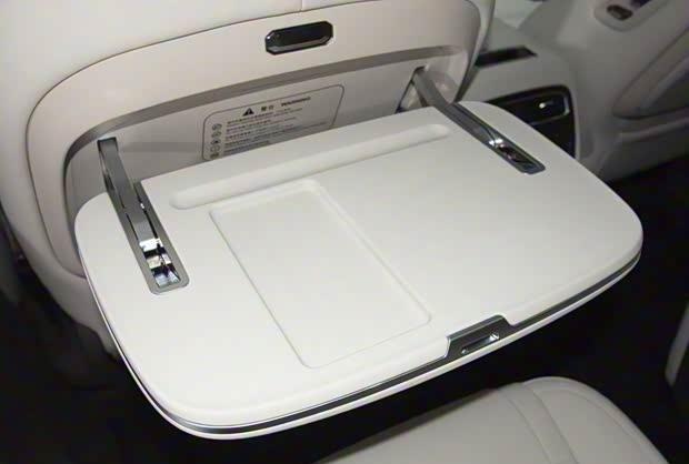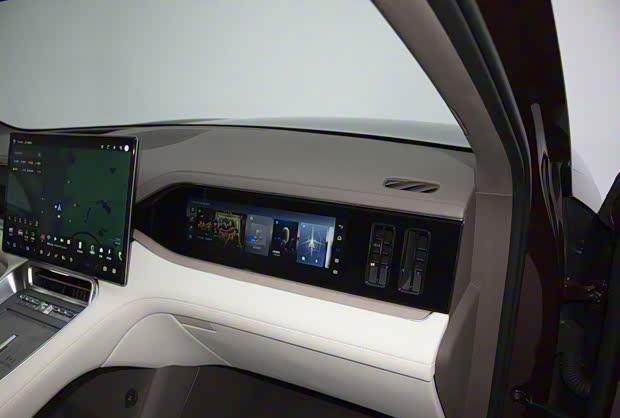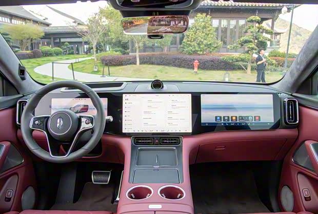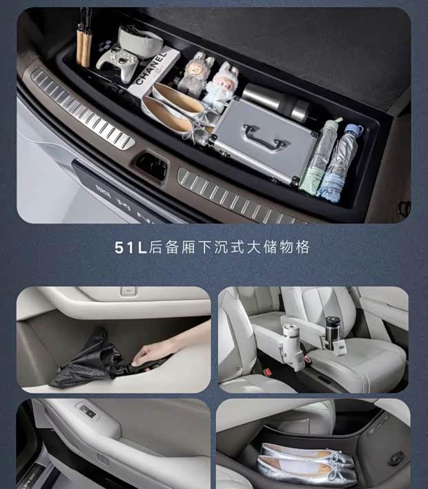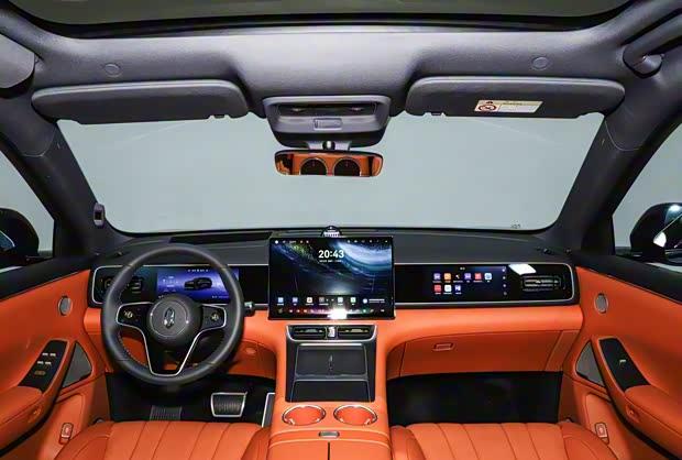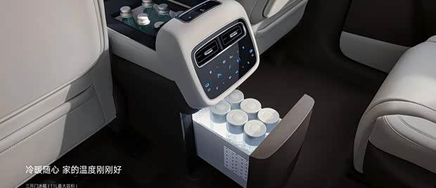 豪华配置方面,车内采用环保皮革与透光真木材质,配备128色氛围灯与香氛系统。智能座舱搭载50英寸AR-HUD与多屏互联系统,集成AI语音助手与3200万像素升降摄像头。全系标配20扬声器帝瓦雷音响,二排配备小桌板,11升智能冰箱可容纳18听饮料。
