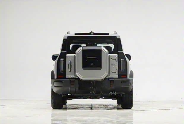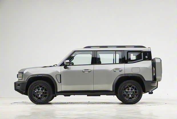 外观方面延续了标志性的方盒子造型,前脸采用一体式格栅与大灯设计,配合两侧雾灯组和银色防护板,展现出硬朗气质。车侧线条简洁利落,车顶配备实用行李架,尾部方正灯组与外挂式备胎设计进一步强化了越野属性。
