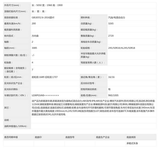 从申报图来看,新款车型的前格栅采用了全新设计,内部结构密度有所降低,并取消了格栅两侧的镀铬装饰条。其余部分则延续了现款车型的造型风格。尺寸方面,新车的长宽高分别为5050毫米、1960毫米和1900毫米,轴距为3085毫米,与现款保持一致。