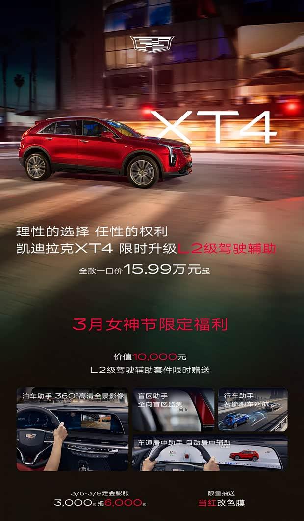 近日,凯迪拉克品牌宣布旗下新款XT4正式推向市场。此次新车共推出三款配置车型,官方指导价格区间为22.97万元至27.57万元。同时,品牌还公布了对应的全款一口价,范围在15.99万元到18.99万元之间。据悉,即日起至3月8日,消费者下订可享受多项限时权益,包括获赠价值一万元的L2级智能驾驶辅助包、定金膨胀优惠以及参与直播间抽奖活动等。