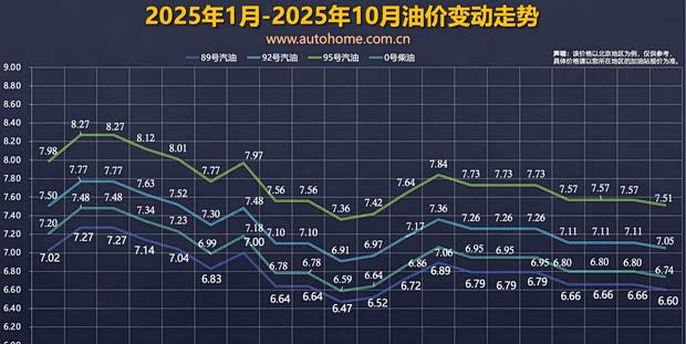 以50升容量的92号汽油油箱为例,此次调价后加满一箱油预计可节省11至13元。目前北京地区92号汽油零售价为7.05元/升,调价后将重返6元区间,或将成为2025年以来的最低油价水平。