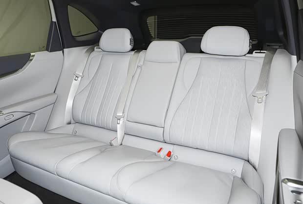 进入车内,座舱延续了“水生美学”设计语言,以自然山水为灵感,营造出舒展轻盈的驾乘氛围。中控部分配备悬浮式大屏,后排亦设有折叠屏幕。车内采用大五座布局,座椅为四座悬浮层设计,均支持三档加热与通风功能。前排座椅配备多点按摩与电动调节,后排靠背则可在115度至125度之间电动调节,并采用大面积皮质包覆。副驾驶座位特别采用了零重力骨架结构,坐垫、靠背与腿托均可多角度电动调节,实现放松的躺姿。音响系统方面,全车搭载了支持杜比全景声的20扬声器环绕音响。