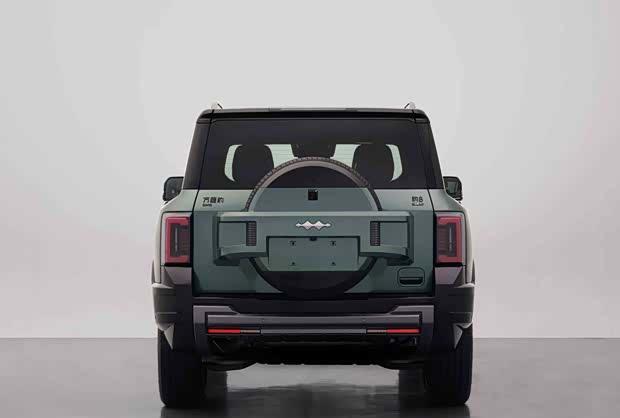 从外观来看,新车延续了硬朗的整体风格。前脸部分,四边形大灯与进气格栅融为一体,配合造型复杂的前包围,进一步强化了越野气息。车顶配备激光雷达,并提供20英寸与21英寸轮圈供消费者选择。车尾采用侧开门设计,并装备了外挂式备胎。车身尺寸方面,新车长、宽、高分别为5195毫米、1994毫米、1905毫米,轴距达到2920毫米。