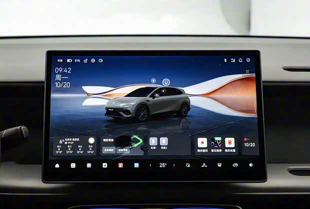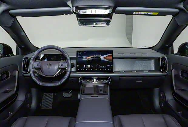 内饰方面延续了运动风格基调,全系采用黑化哑光枪灰镀铬饰件,配合大面积软质包覆材料。基础款提供速域紫与驰影灰两种内饰配色,高配款则采用竞速灰主题,顶棚与座椅选用真皮与仿麂皮超纤绒材质,并压印专属赛道纹理与车型标识。车内配备矩形全液晶仪表盘,副驾驶前方设有魔术扩展岛台,配备六个功能开孔,可适配多种扩展配件。