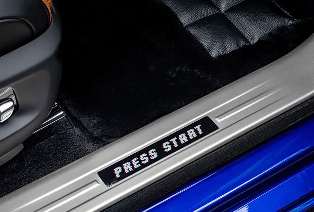 外观上,车辆采用双色漆面设计,主体为萨拉曼卡蓝,上部覆盖水晶钻石黑色漆,呼应经典街机硬件中的金属质感与霓虹视觉效果。发光格栅、黑色制动卡钳及22英寸七辐锻造轮圈进一步强化了其复古未来风格。