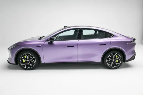 车身侧面采用溜背式造型,配合无边框车门、半隐藏式门把手等设计元素,呈现出鲜明的轿跑风格。实拍车辆配备了19英寸多辐轮辋和绿色刹车卡钳。尺寸方面,新车长宽高分别为4830/1905/1480毫米,轴距达到2900毫米,增程版与纯电版尺寸保持一致。