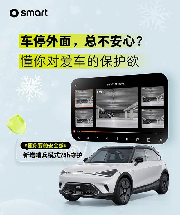 近日,smart品牌宣布为旗下smart精灵#1及smart精灵#3车型推送最新一轮OTA升级,版本为smart OS 1.6.0 CN。本次升级共包含三项新增功能与八项优化项目,其中备受关注的哨兵模式已正式上线。