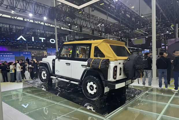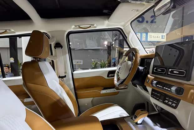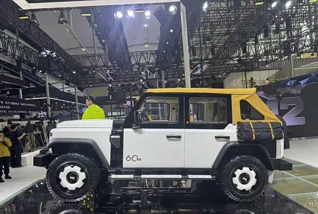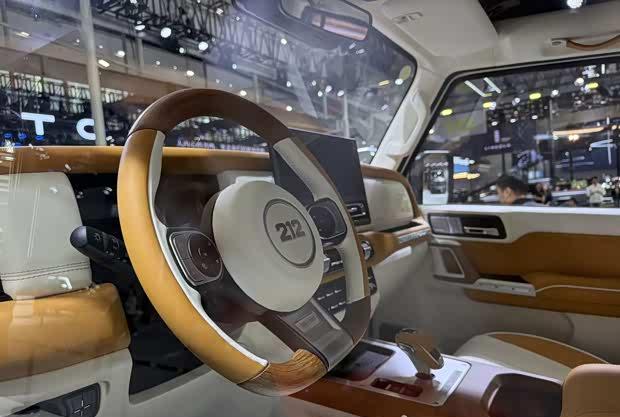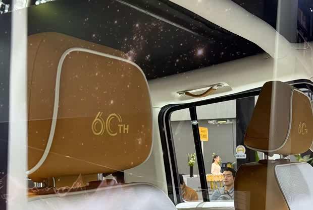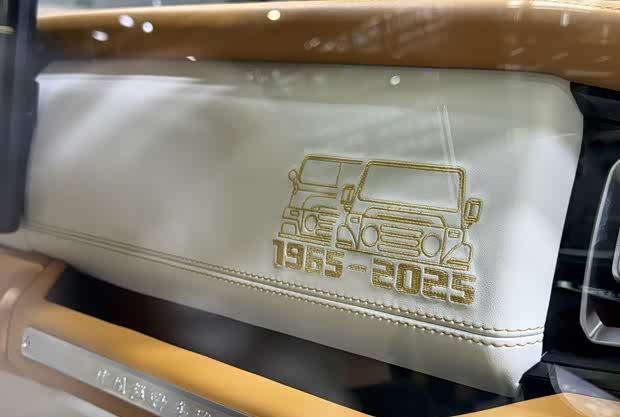 全新212 T01 60周年纪念版于广州车展正式亮相,延续了汽油版车型的整体设计,但增添了专属纪念拉花和软顶结构。内饰采用双色拼接方案,座椅头枕处带有60周年专属缝线,突出个性化风格。