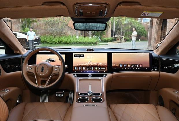 进入车内,S800采用了线条平直的中控台设计,搭配双色真皮方向盘、HUAWEI XHUD抬头显示、一体式环宇三联屏以及智能电子内外后视镜等配置。副驾驶乘客可操作智能中控大屏与专属娱乐屏,结合智能座舱系统,通过三指滑动手势即可实现多屏之间的内容无缝流转。中控台下方设有双50W无线超级快充面板与双60W有线超级快充接口,其中无线充电面板还支持为展开状态的双折叠屏手机进行充电。