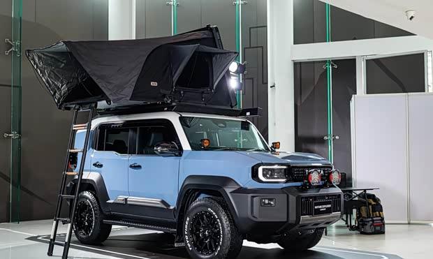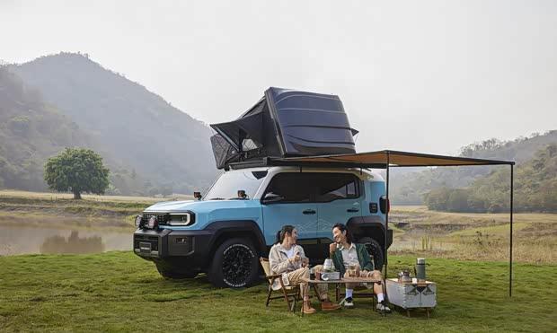 Nature Explorer的设计侧重于长途户外旅行与露营需求。车头加装了专用照明灯,提升夜间非铺装路面的行驶安全性。车顶搭载了遮阳棚等露营设备,并同样采用越野轮胎,兼顾功能与实用性。