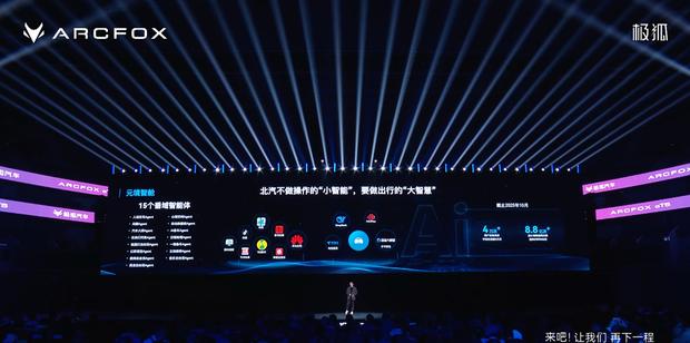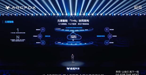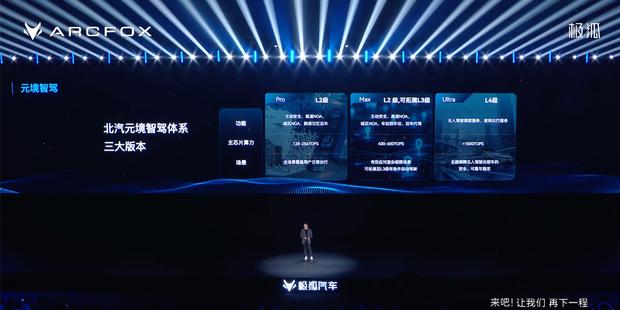 在发布会现场,北汽极狐正式发布了元境智能全域融合架构。该架构重点实现了驾舱融合、"跨生态"AI融合以及"真实世界与虚拟世界"融合三大功能。基于此架构,品牌推出了元境智驾和元境智舱两大系统。其中元境智驾规划了Pro、Max、Ultra三个版本,现阶段搭载的Pro版本可实现高速与城区NOA功能,未来将逐步升级至L3级别,最终Ultra版本将实现L4级自动驾驶能力。